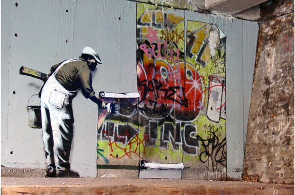 Banksy rose to prominence vandalizing public property on the streets of Bristol, the bustling UK city located south of London. The elusive British artist found fame by leaving his street art wherever he saw fit. Set apart by clever innovations that differentiated him from other graffiti artists, Banksy’s graffiti was deemed art and preserved on city walls while all other graffiti art was scrubbed clean.