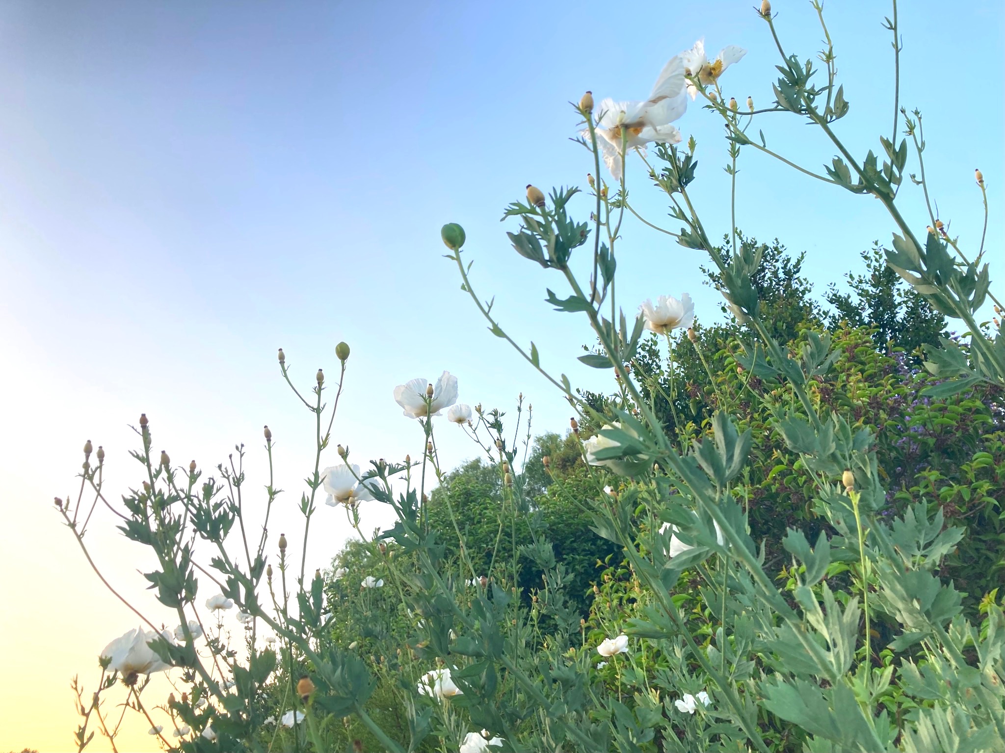 The Matilija poppy (Romneya coulteri) is a California native plant. The drought-tolerant species is unique to California natives for its large blossom and distinctive appearance. Its blooms are the largest of any native California plant, some measuring up to eight inches across. The bright white and yellow poppy is perennial and tends to spread into fields once it is mature. It buds in the spring and blooms in early summer. The Matilija poppy was a top contender for the California state flower. In contrast with the famous, bright orange species, the Matilija poppy is a tall shrub that can grow eight feet high and eight feet wide hosting a sea of delicate crinkly-white petaled flowers.